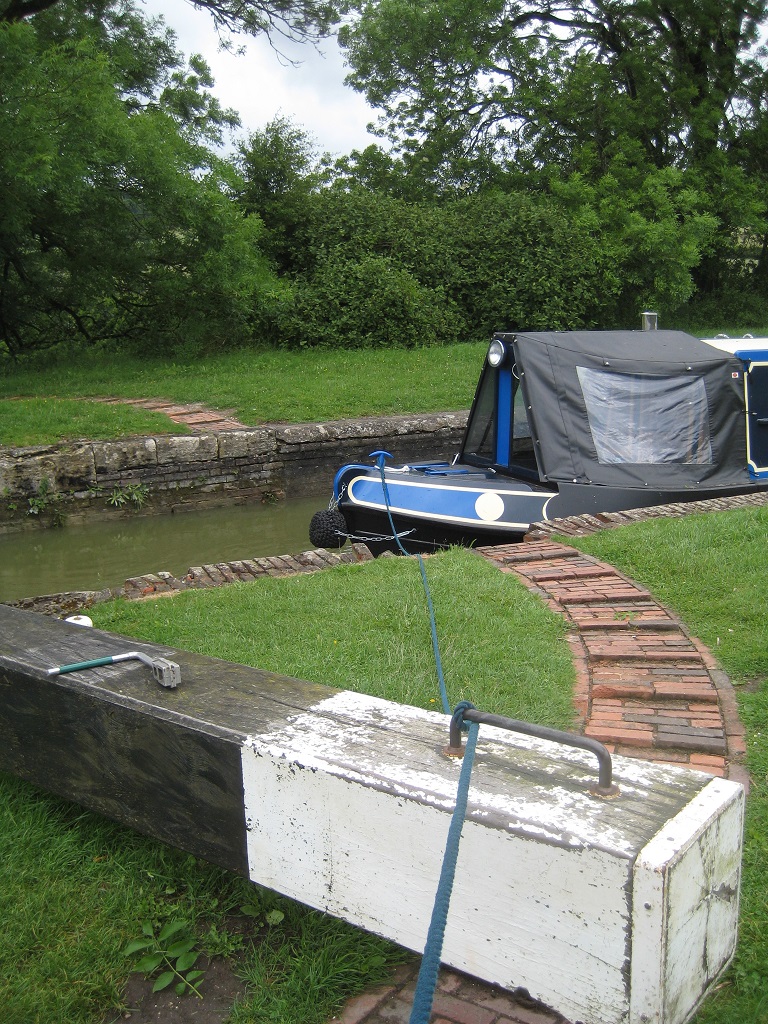 At one lock, the wind was so gusty, we couldn’t get the gate open, even with both of us pushing and pulling. Toby put the bow rope through the handle, I pulled it tight, and Toby put Oliver in reverse, it worked a treat.