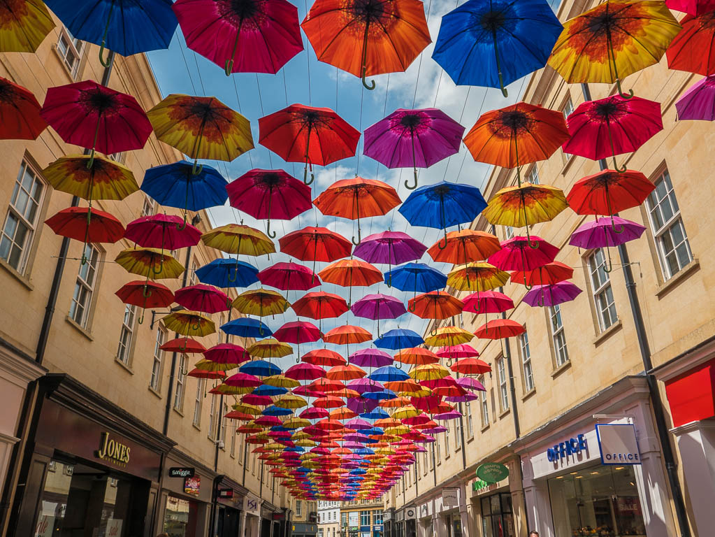 Quite why Bath needed to be protected by so many umbrellas in this glorious sunshine we are not sure but it made an interesting spectacle.