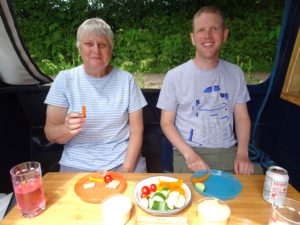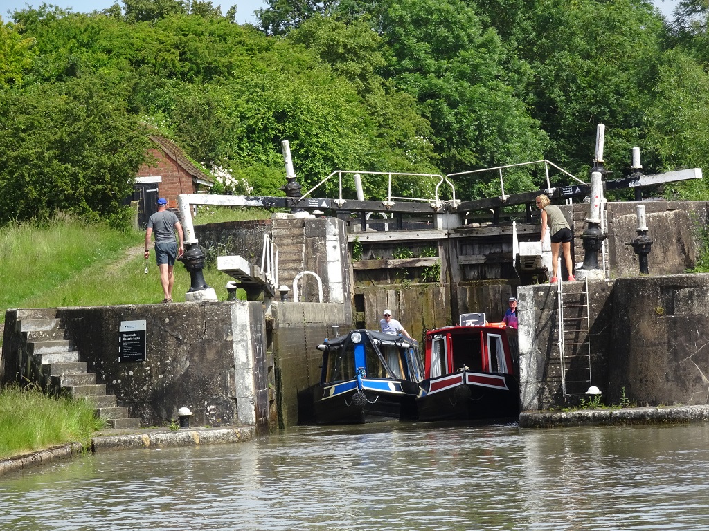 We stayed good to our promise and stopped for lunch, and a much needed rest. We cast off for the afternoon’s shift and caught up with the hire boat from this morning, another ten locks done, by which time we were all starting to flag with the warm weather.