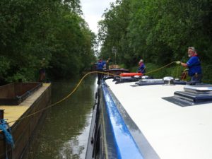 Toby pipes up that he wants to wash the boat. I reluctantly agree to clean the inside, and Toby washes the outside – he managed the roof and the towpath side, to many compliments by the numerous passers by. Toby’s reward – a big glass of pimms, chicken curry followed by bananas and custard.