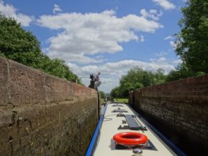 It wasn’t long before we were approaching the 11 locks of the Wilmcote flight. It was almost lunchtime and we had to make the decision either to stop and risk the boat behind catching us up and having to set the locks, or to crack on. We decided to crack on and had a piece of mum’s chocolate cake to keep us going.