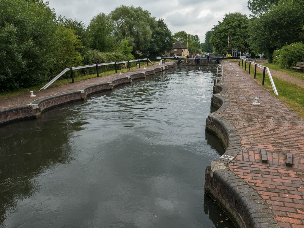 We wandered into town for lunch and had a decent meal at The Broad Face before a walking tour of the locale. Part of our walk took us along the side of the river opposite Oliver and gave us an opportunity for a picture we are rarely able to get. On the way back we returned over the weir and lock.